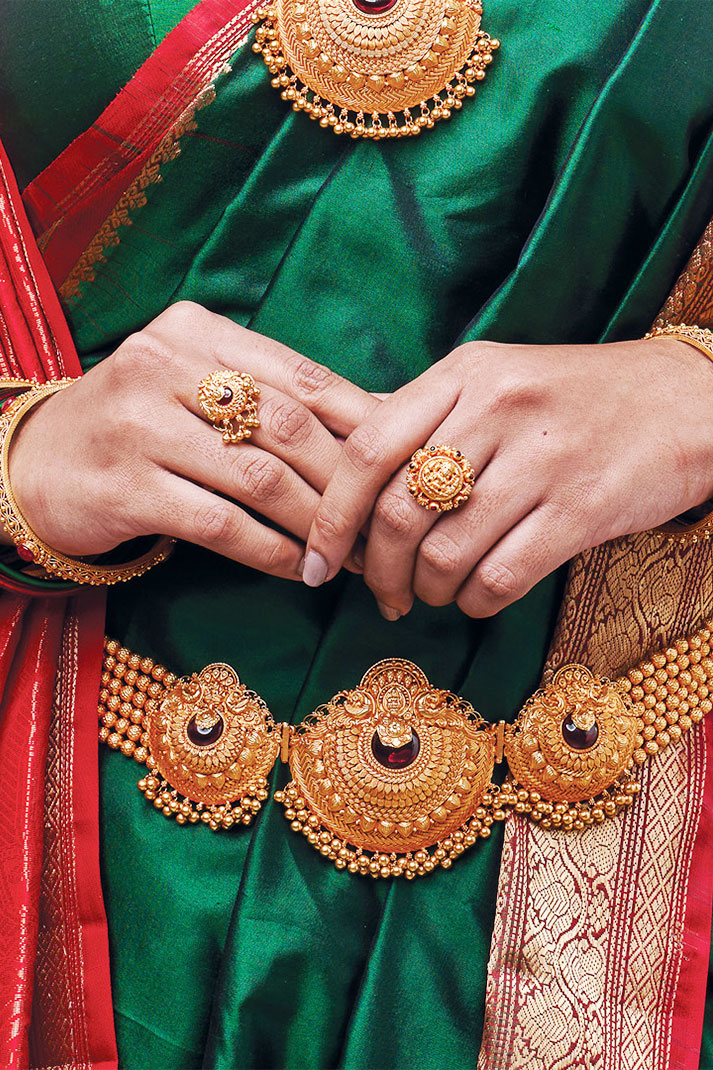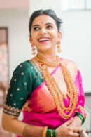 A Maharashtrian bride is one of the most beautiful Indian brides to celebrate traditional beauty wholeheartedly on the big day. Traditionally, most Maharashtrian brides have liked pairing pearls and golds as is visible from Marathi literature & poetry as well. So you know what exactly you need to go for if you want the traditional Marathi Mulgi look. Having that sorted, it’s now time to see what all you can pick from and what significance each of the jewellery pieces hold. The rich Nauvari saree, the crescent moon adorning the forehead and the dainty mundavlya are just some bits that make up the beautiful Marathi bride. The Maharashtrian bride jewellery is a big part of the look and here is a small sneak peek into it.